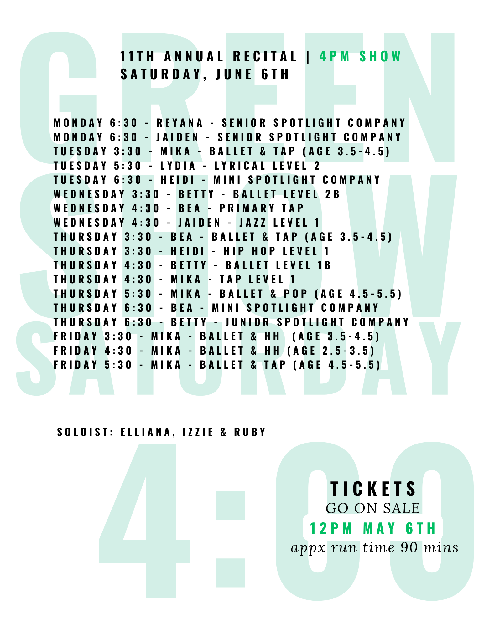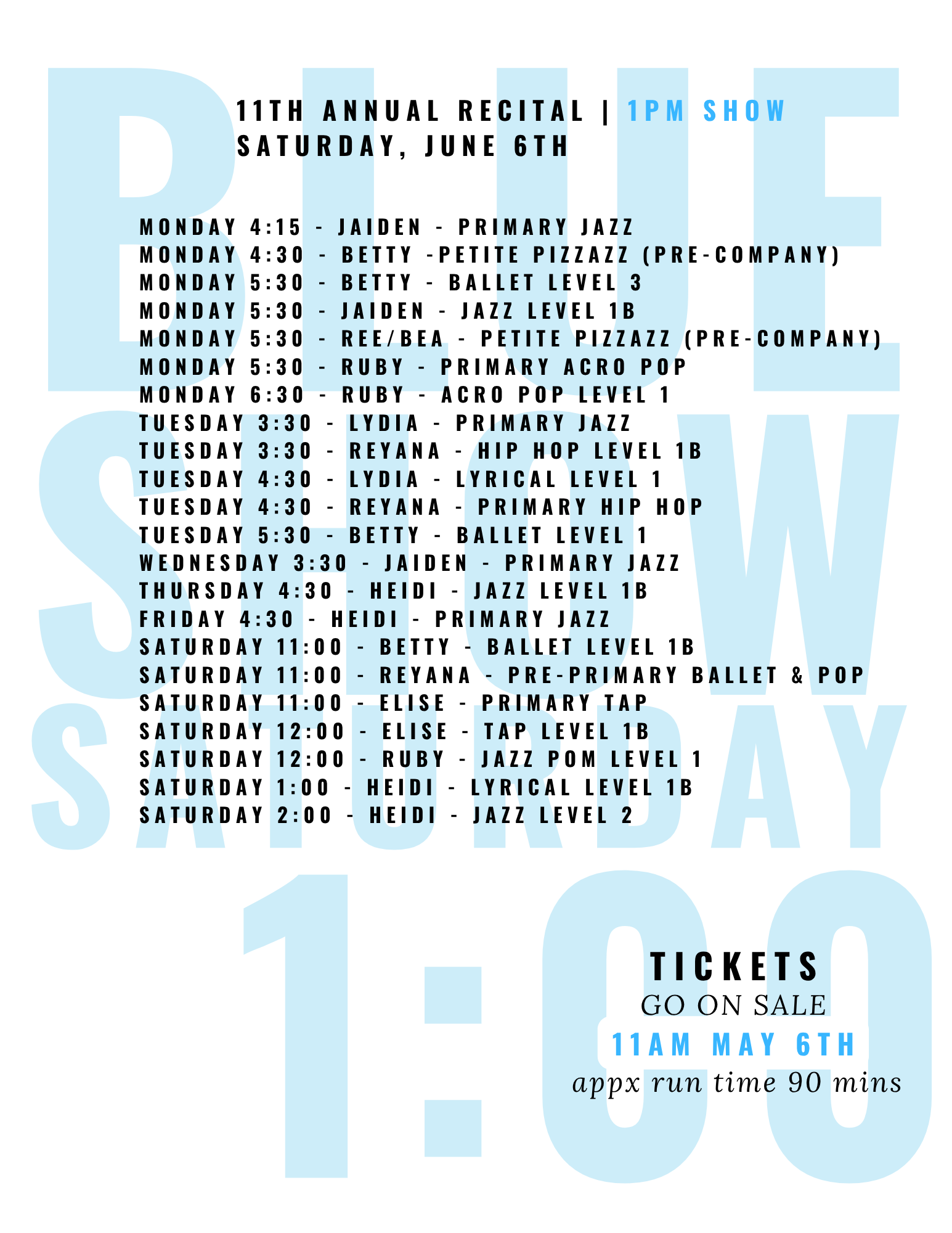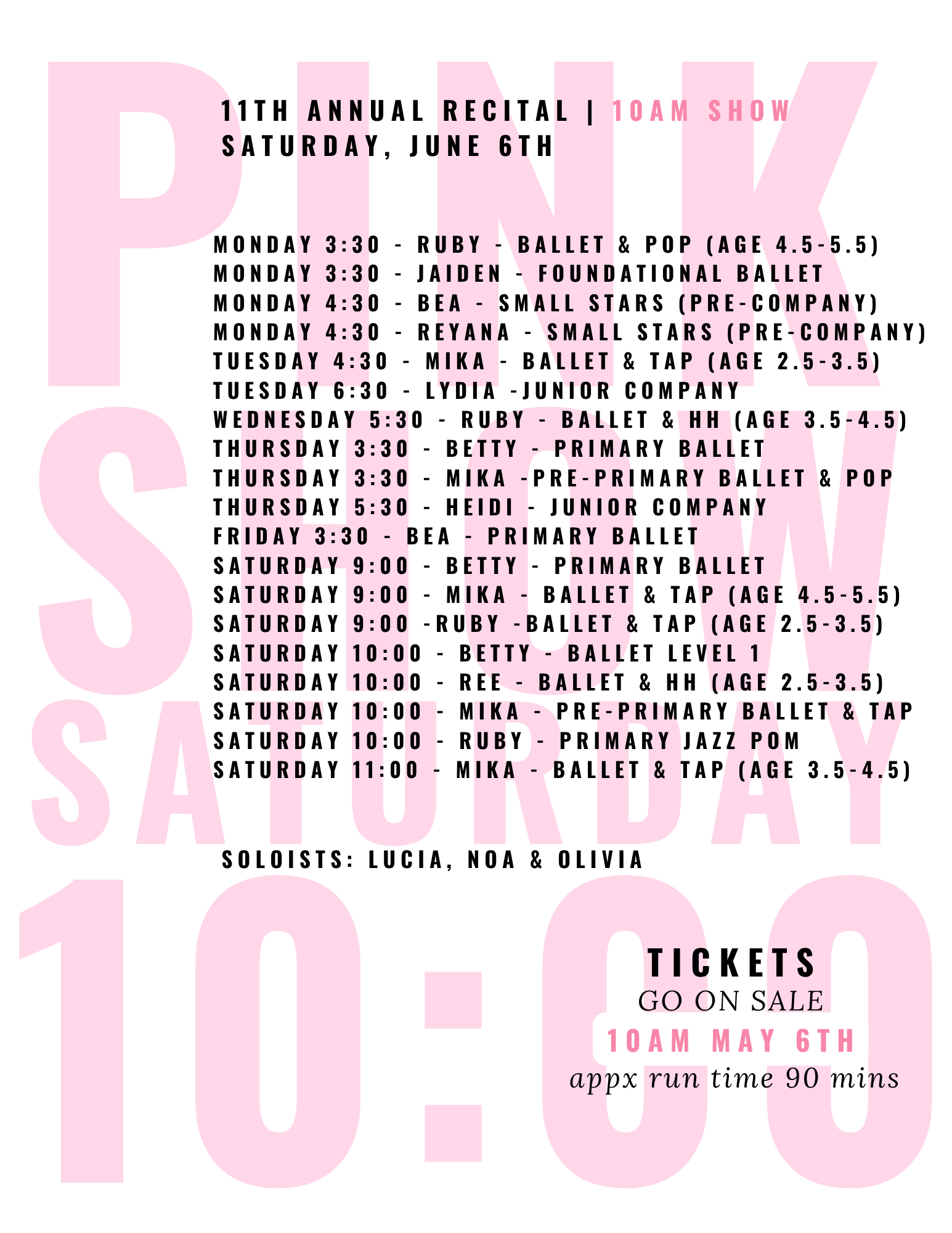 DANCE BOUQUETS WILL BE ANNOUNCED SOON (BOUQUETS ARE OPTIONAL AND QUANTITIES LIMITED)