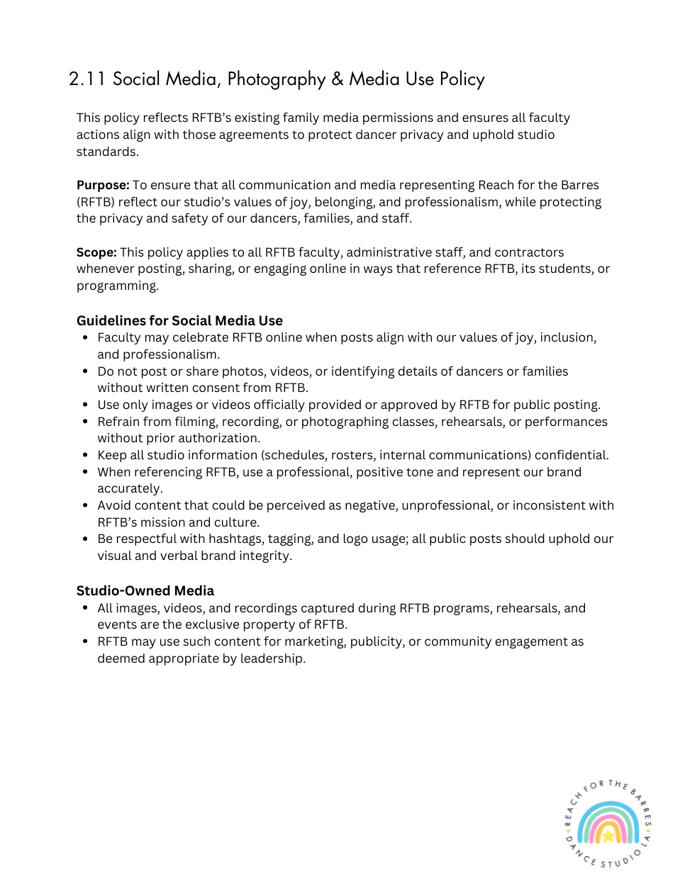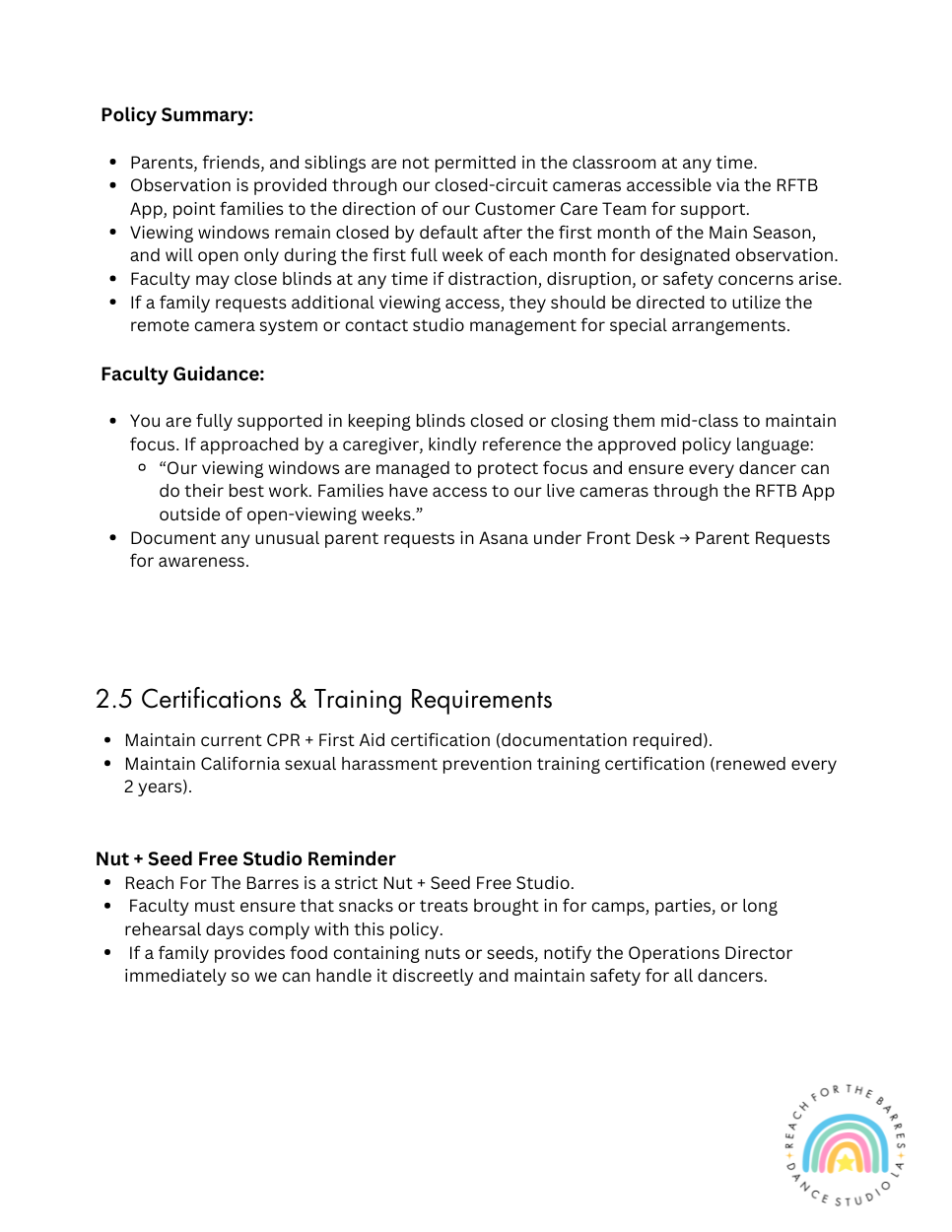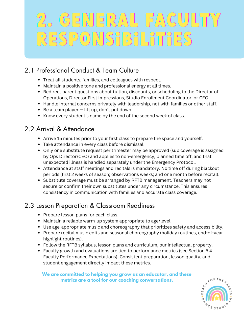 RFTB FACULTY PROTOCOL HANDBOOK